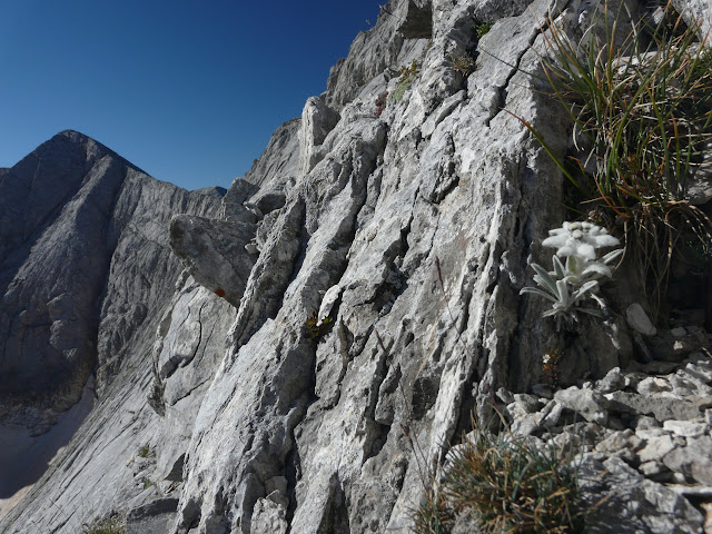 разчитам само на тях. За подарък, това слизане ме отведе до красиви еделвайси, израстнали вертикално, които трудно-не трудно, снимах ги, огряни от първо златно слънце.
